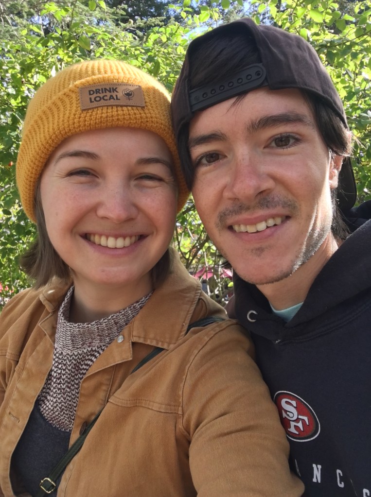 We got our breakfast bagels from Posh Bagels and our coffee (tea for me) from Great Bear Coffee and sat ourselves on a bench that looked out onto the street at a parked 1965 Mustang. It truly felt like a crisp, fall day in the South Bay, with the leaves finally turning colors, crunching under our feet, just cold enough for a sweater and you’re not sweating by 1:00 pm.